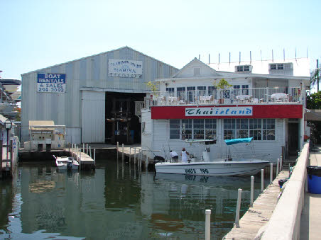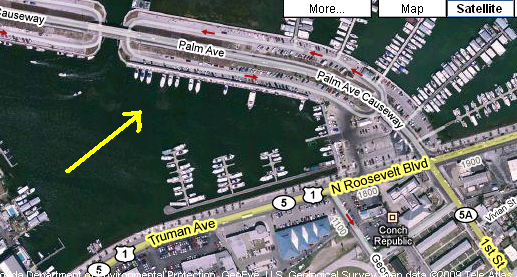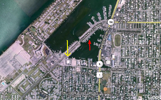 In the picture below the yellow arrow points toward the Barrelhead and the red arrow points toward Sharky's boat.