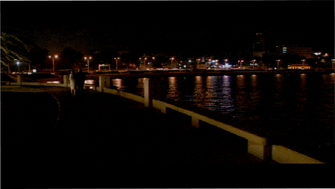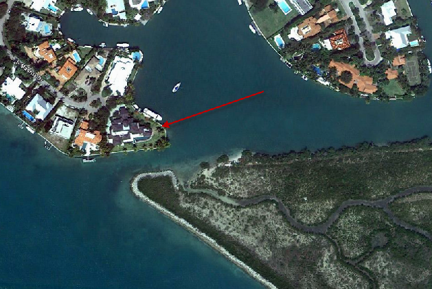 Next we see Crockett and Tubbs meet with Yero at his house. This was filmed at a house at the very end of South Mashta Drive on Key Biscayne. The land across the small canal is part if Bill Baggs Cape Florida State Park. In a couple of cuts you can see houses in Stiltsville.
