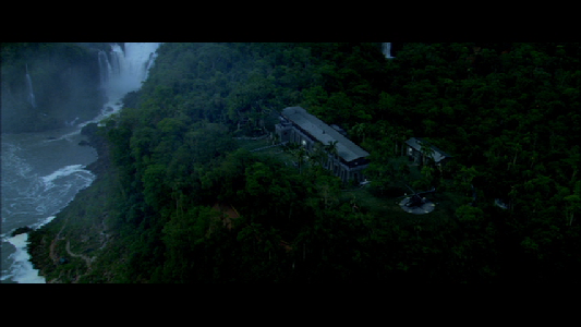 Then we go to Montota’s house by a dramatic waterfall. The waterfall is Iguacu Falls, Parana, Brazil. The house is in Coral Gables and was put in place via computer. I have not yet tracked down the house’s exact address.