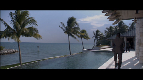 He arrives at a nice house on the water. Matt5 from Miamiviceonline.com let me know that this was filmed at 6381 N. Bay Road, Miami Beach. I will have to go there to see if the other safe house scenes were also filmed there. It looks likely that they were.