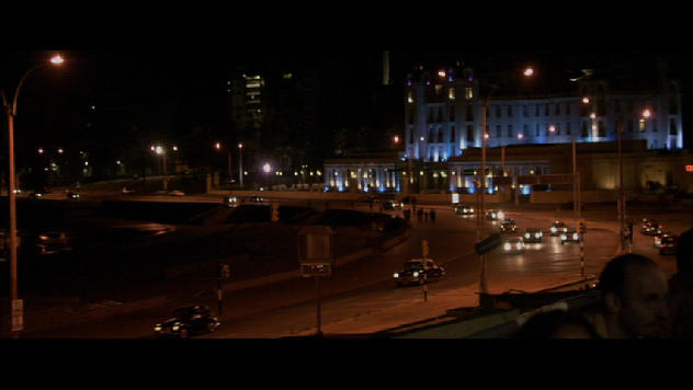 Then we see Isabella coming out of a bank. This is suppose to be Geneva but it was filmed in Montevideo, Uruguay.