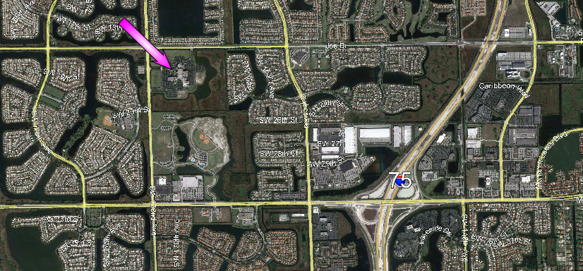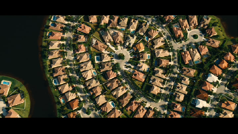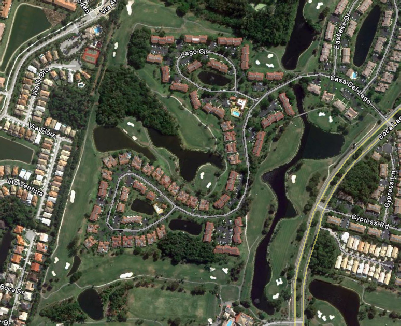 Then we see aerial views of nice neighborhoods. First we see Parkland Golf and Country Club in north west Broward County just south of the county line in Parkland, FL. The shot is oriented with south being at the top of the screen.