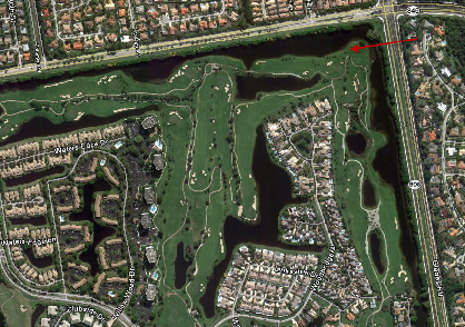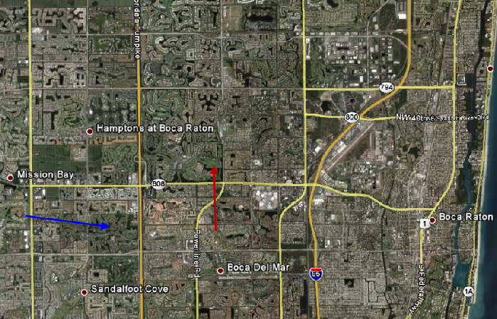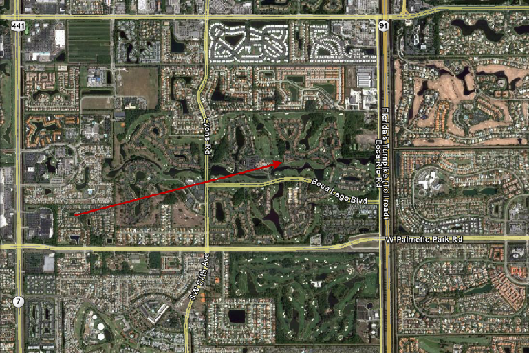 Next we see Boca Lago Country Club in Boca Raton just west of the Florida Turnpike. They are flying from west to east and cut just before reaching the Florida Turnpike.