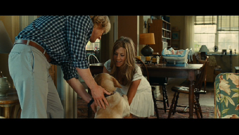 Marley’s sitter is getting to know Marley. This could have been either on location or on the set.