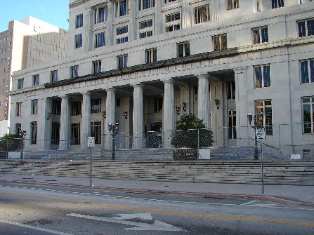 From there we go to the police station. This was filmed at yet a third location (for the Police Department). The Miami Dade Courthouse.