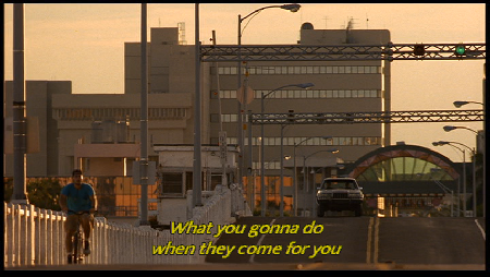 They are arguing because Marcus is eating in the car. We see they are being tailed. This was not filmed in Florida. Thanks to Harold Loeser who figured out where this was filmed, we now know that this was filmed in San Pedro California. On W. Paseo Del Mar by S. Parker Street. They are driving southbound. Thanks again to Harold Loeser for finding this location and letting me know.