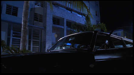Then they arrive at Mike’s place. The Collins Park apartments. 2000/2030 Park Avenue in Miami Beach. I first remember seeing this location on film in Miami Vice. The season two episode, Bought and paid for. During the famous Ferrari vs. Lamborghini chase, they race around this building.