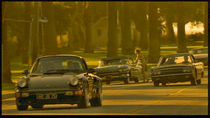 They pull over, and a team of three approaches to steal the Porsche. Marcus and Mike pull the old Passenger 57 trick and subdue the would be car thieves. This was filmed on W. Paseo Del Mar at Roxbury Street.