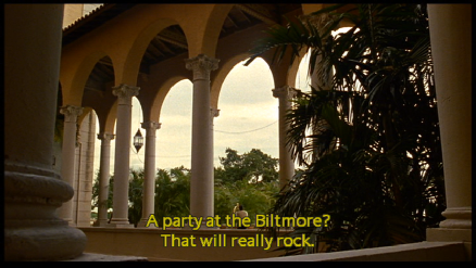The party does not go well and Julie escapes via the roof and swimming pool. All filmed at the Biltmore.