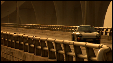 We see Mike’s 911 speeding along on the same port bridge where earlier we saw them