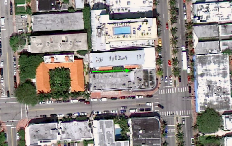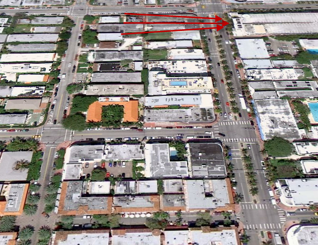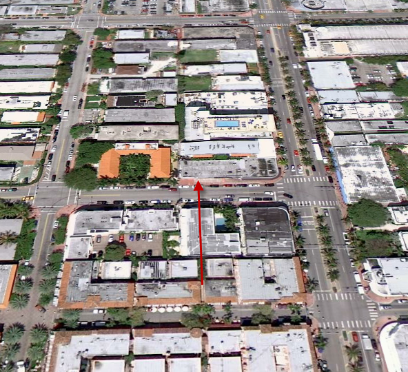 They run down to the ground on the south side of the Paris Theater. However when they hit the ground and are seen running down the alley, they are in a different location. They are in the alley headed east behind (north side) Martha’s Beauty Shop. 409 15th Street, Miami Beach.