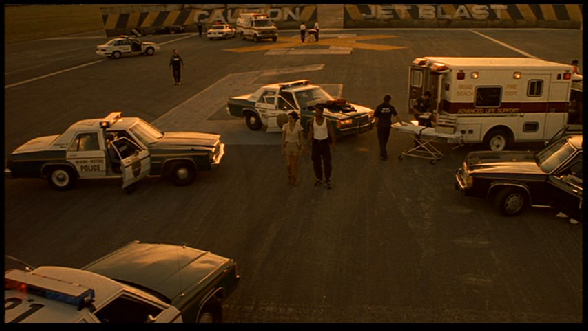 They chase Fouchet up taxiway T. They are headed Northwest. The control tower seen in the background is the same one we see at the “Nigerian” airport in the pilot of Burn Notice.