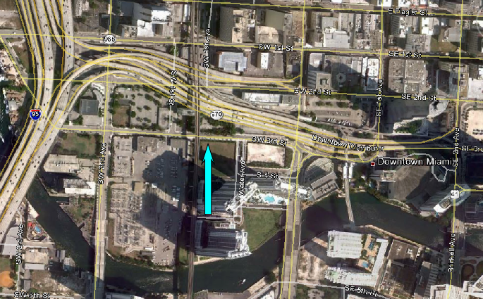 The camera view switches to Reggie and they continue northbound on South Miami Avenue passing Samana Drive but the view is to the east.