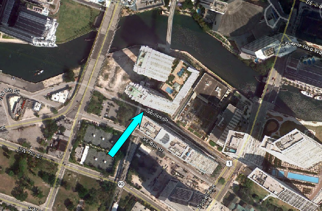 Eastbound on SW 3rd Street passing SW 1st Court again.