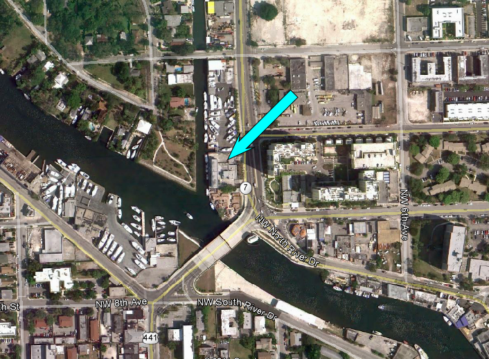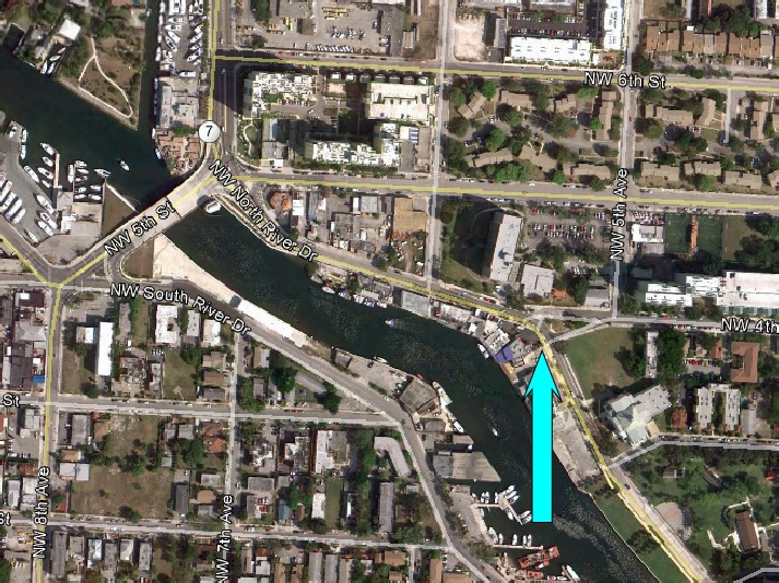 They break out of Flagler Dog Track and then we see them driving. In the first cut we see them westbound on NW North River Drive by NW 4th Street headed toward Bucum’s place.