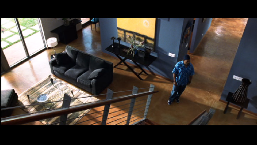 From there we go to Bucum’s apartment. Burn Notice fans will immediately recognize this as Michael’s loft. This was filmed on location at 528 NW 7th Ave., Miami. Fans will notice some differences. Bucum enters thru the north end. The doors he enters in through are props built into a fake wall built within the loft. The spiral staircase is also a prop installed for appearance and leads up to an imaginary third floor.