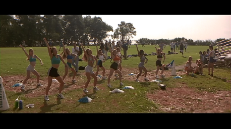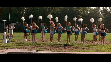 Then we see cheerleaders practicing on the field. This was also filmed at Ransom Everglades School. The field has since been upgraded.