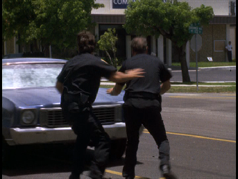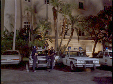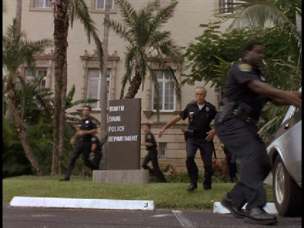Intercut we see the police leave the station. SW 8th Street at Douglas Road.