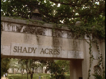 Then we go to Shady Acres to continue the investigation. The exterior was filmed at the Spanish Monastery, 16711 West Dixie Highway. We saw this used in the Miami Vice episode 55, Forgive Us Our Debts.