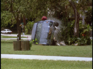 Then Ace loses control and crashes. This was filmed at David T. Kennedy Park at the intersection of Kirk Street with S. Bayshore Drive in Coconut Grove.