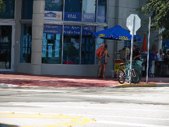Then southbound past 1st Street on Washington Avenue. We see the same corner in Burn Notice episode 25, Bad Breaks where Fiona steals the tip jar as a distraction.
