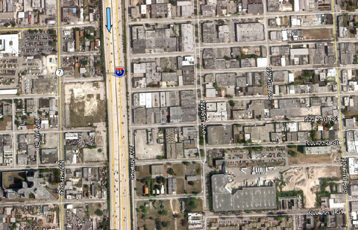 “Where are they.” They are back by the warehouse headed southbound on Interstate 95. The view is looking west down NW 27th Street.