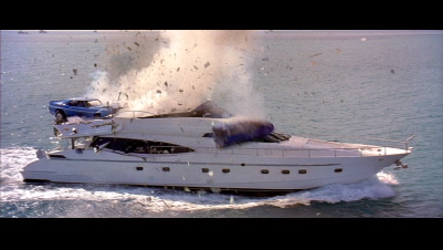 Here they make use of a jump ramp and land on the boat. At a couple points we can see the light house in the background.