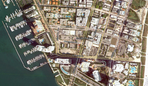 Then we see them still northbound but south of where they just were. They are now at the south end of Joe’s Stone Crab Restaurant, 11 Washington Avenue. We have seen Joe’s used in Burn Notice. In episodes: 21 Good Soldier, 23 Hot Spot, and 59 Brotherly Love.