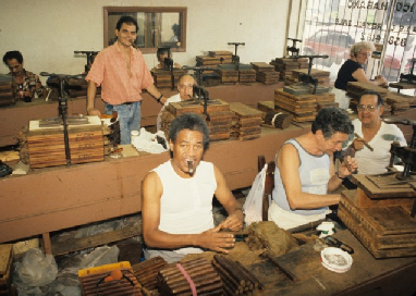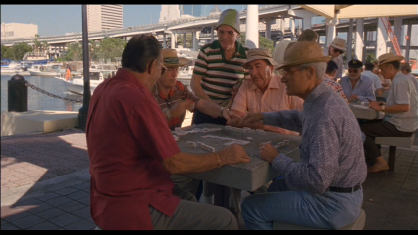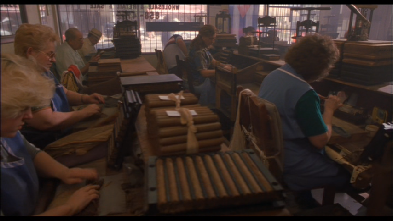 Then a cigar shop. A quick reverse phone number check of the number we see on the store window reveals that this was filmed at the El Credito Cigar Factory, 1106 SW 8th St (Calle Ocho), Miami.
