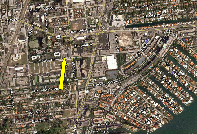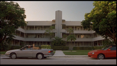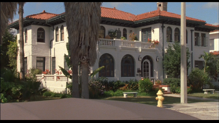 Then we cut to the exterior of Mary’s apartment where Healy is eaves dropping from the street. This was filmed on location at 2066 North Bayshore Drive, Miami.