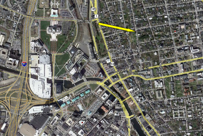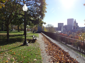 Then we see Ted getting some more advice in a park. This was also filmed in Providence Rhode Island. On College Hill at Prospect Terrace Park, 60 Congdon Street. (Note: Providence like allot of northern cities assigns street addresses in a somewhat random order without any logic or navigational meaning. The number 60 does not mean that the park is located in the center of downtown in the first block, only the spot on that particular street).