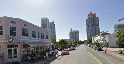 Then we meet Sully. He is arriving at the Big Pink by driving northbound on Collins Avenue on South Miami Beach. The Big Pink is located at 157 Collins Ave.