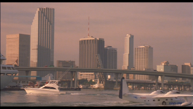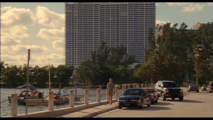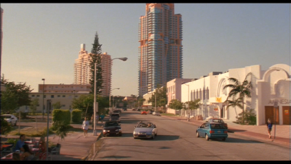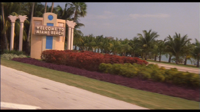 Then we see the filming return to Florida. We see the welcome sign on the Julia Tuttle Causeway that welcomes driver’s onto Miami Beach.