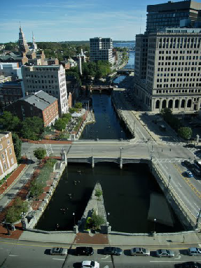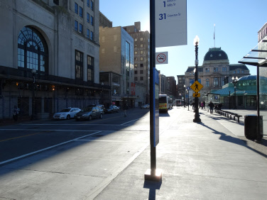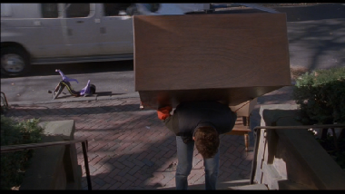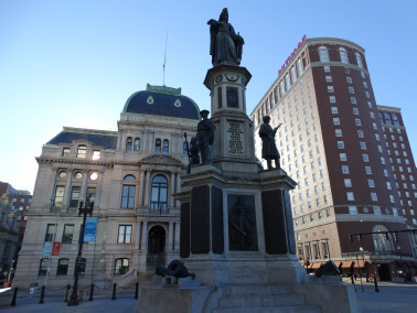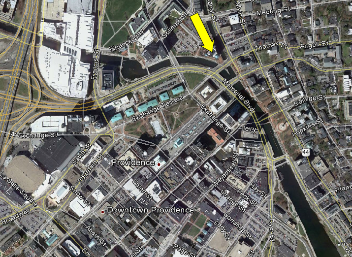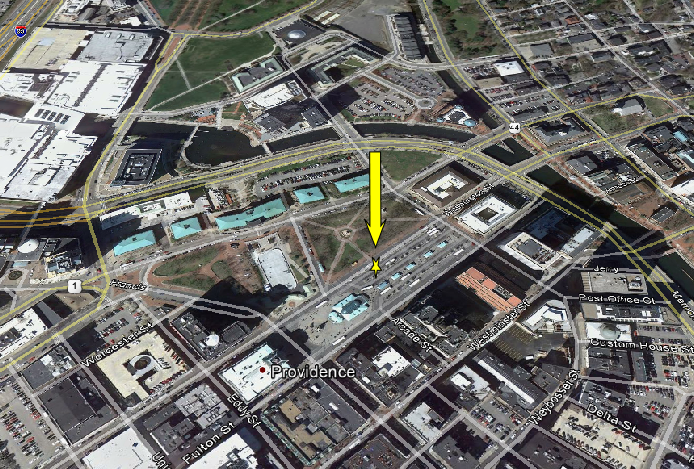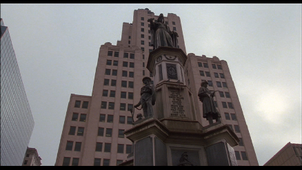 Then we jump back north to Providence. This exact shot cannot be recreated because shortly after this filming they reconfigured the street and moved the statue 160 yards to the south west. This was filmed at 55 Fulton Street in City Center.