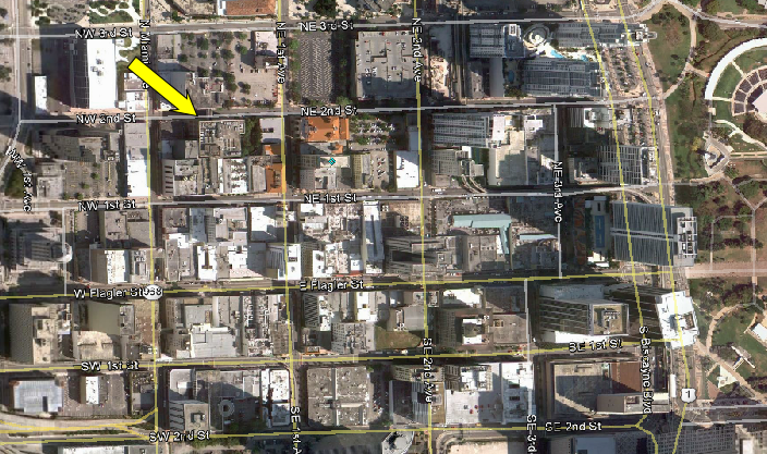 Then we see Mary up in an office, though she is not in the building we just saw her enter. She has moved south to One Brickell Square on the SE corner of Brickell Avenue and SE 8th Street.