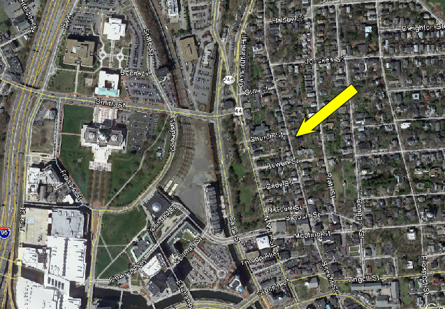 Then the filming returns to Providence Rhode Island. We see Ted having a rough go of it at 1867 Benefit Street.