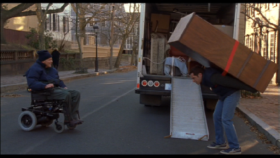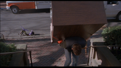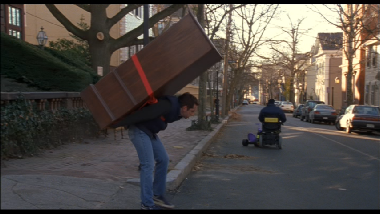 Goof: When the guy drives off in his wheel chair he drags the big wheel down the street. Then we see Ted headed up the stairs and the big wheel is back at the base of the stairs.