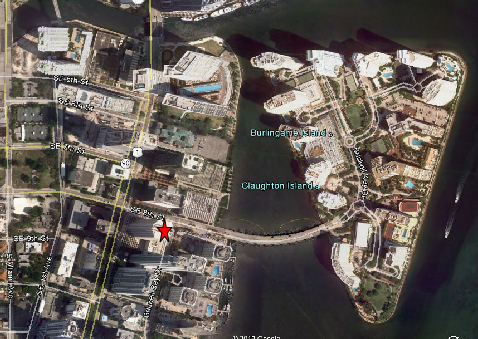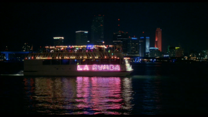 Then we see a nighttime establishing shot of downtown from Watson Island.