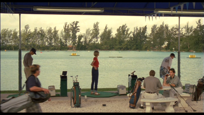 Next we see Mary driving some golf balls at an aqua driving range with Healy watching. This was filmed on location at 2250 South Park Road in Hallandale, Florida.