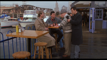 Then we see Ted drinking with Dom, filmed at the same location where we saw him meet with Healy earlier. At the Hot Club in Providence.