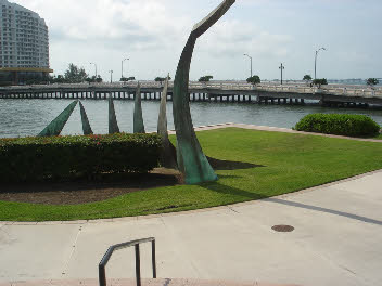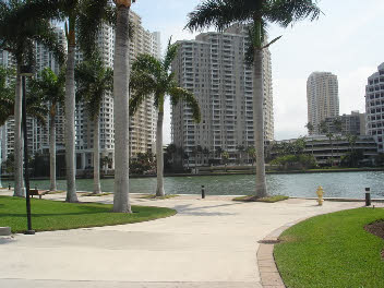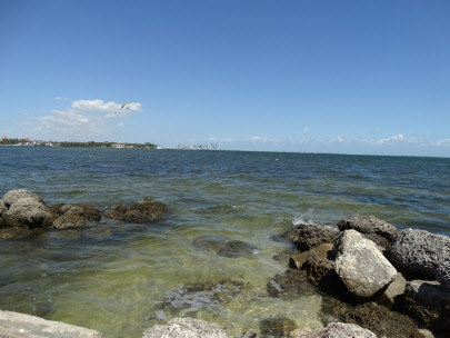 Ted walks out onto N Bayshore Drive and walks south with Biscayne Bay in the background.