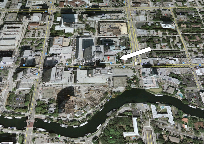 Then we see Sam walking out of a Suntrust Bank. This was filmed on location up in Ft Lauderdale Fl. At 501 Las Olas Blvd.