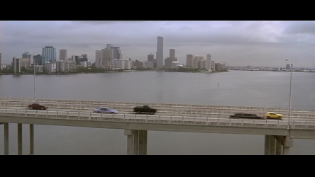 Then we see them happily traveling over a causeway. This was filmed on the Rickenbacker Causeway headed away from the mainland and toward Virginia Key.