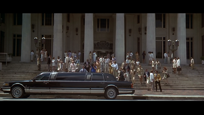 Next we see both sides arriving at the exterior of the courthouse. This was filmed on location at the Dade County Courthouse. On the north side. NW 1st Street at NW 1st Avenue. This scene reminds me of the Pilot of Miami Vice where Leon comes out of the same location and down the same stairs.