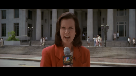 Intercut we see the start of day 2 in court and the reporter is shown outside the courthouse. This was filmed at the Dade County Courthouse.