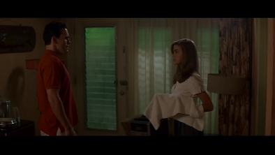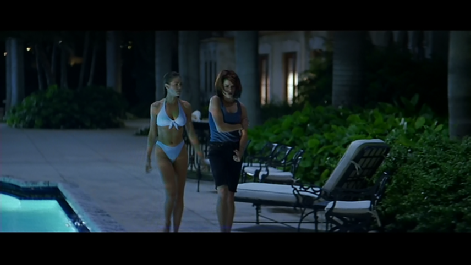 Then we see Kelly has gone for a swim. Filmed on location at Ransom Everglades School. The pool has since been filled and moved to a new location where the tennis courts were located during this filming. There are now tennis courts where this scene was filmed.