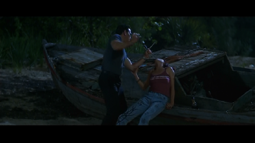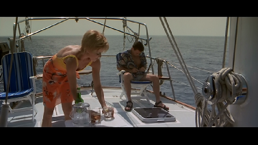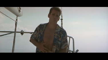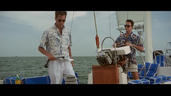 Then we see them sailing out in the sea. In reality this was filmed in Biscayne Bay just off of Key Biscayne. Stiltsville (made famous in the Miami Vice episode, Out Where The Buses Don’t Run) can be seen in the background at times.