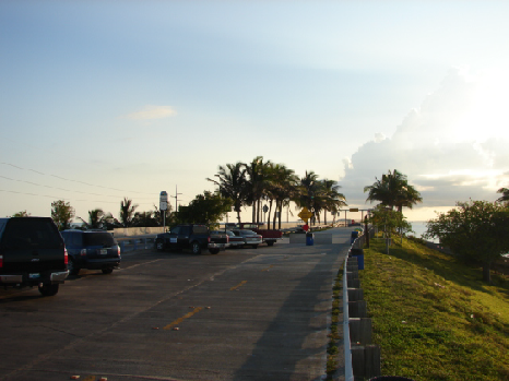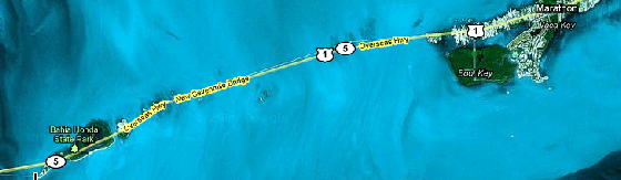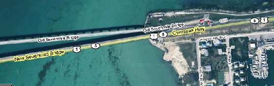 This occurs at the north end of 7 mile bridge. This spot is now fully paved and is a small parking lot for people who wish to bike, jog, or walk on the old flagler bridge out to Pigeon Key.
